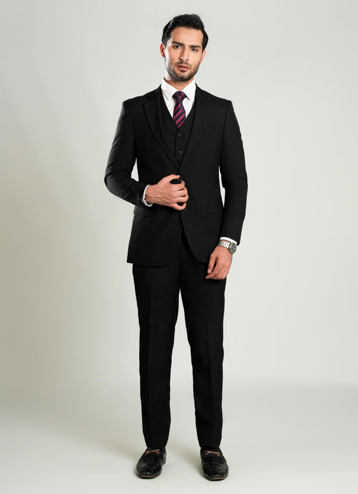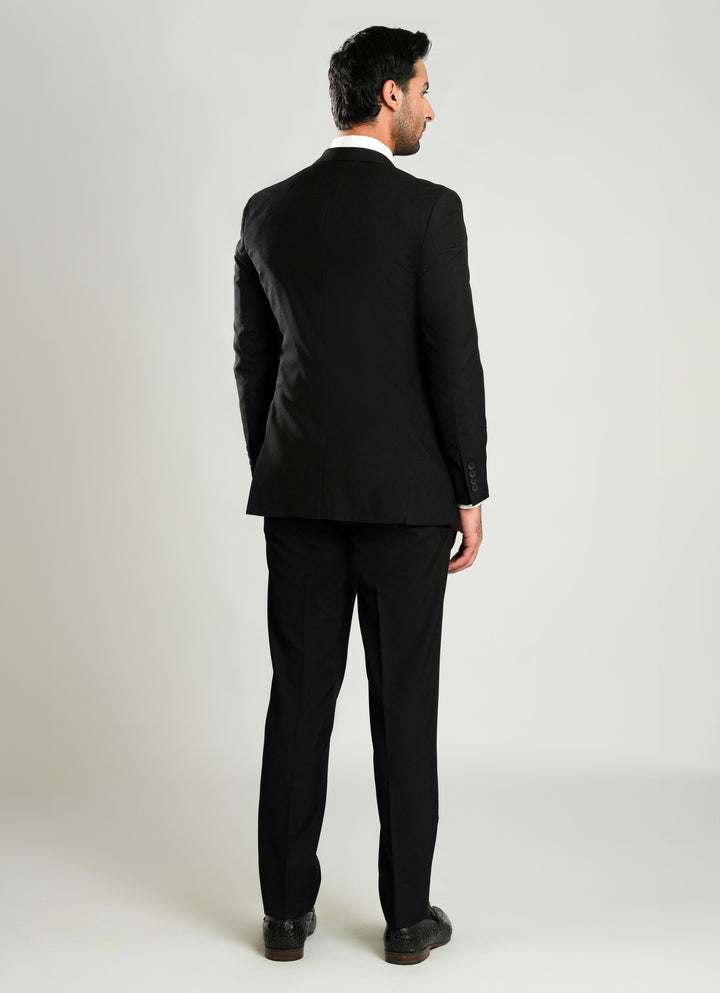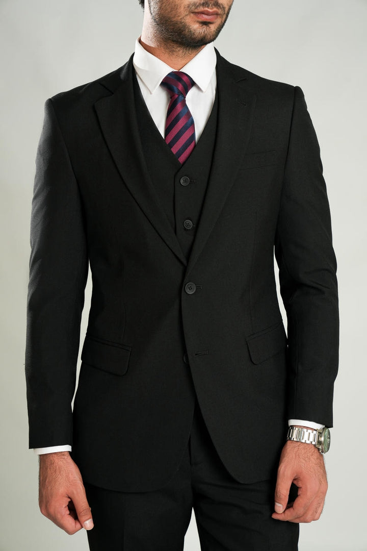 Black Plain 3 Piece Suit - Tropical Classic Poly Wool