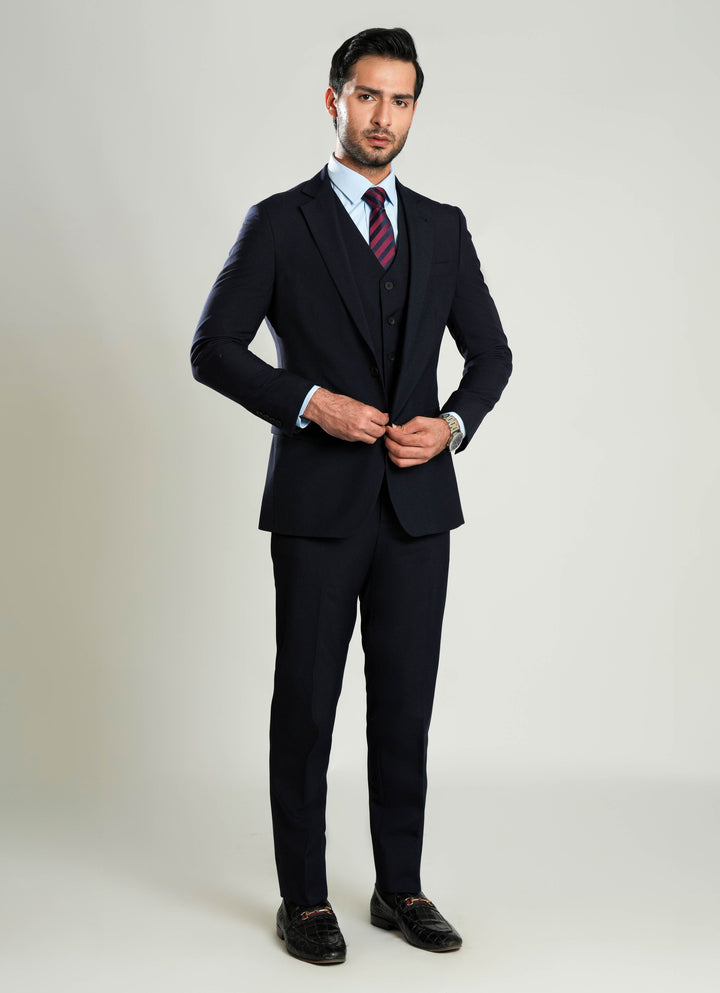Stylish grey 3-piece suit crafted in poly wool. Perfect for office wear, business meetings, and events.