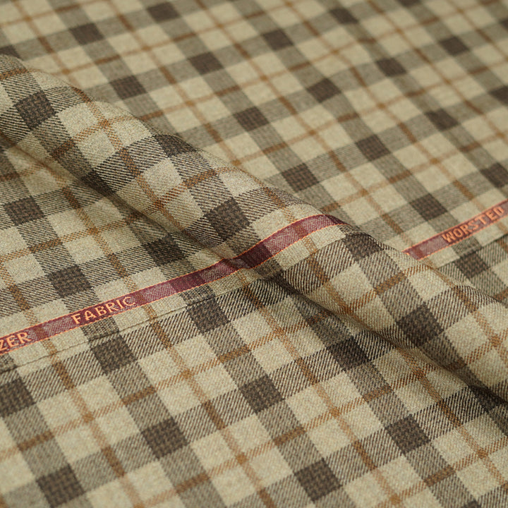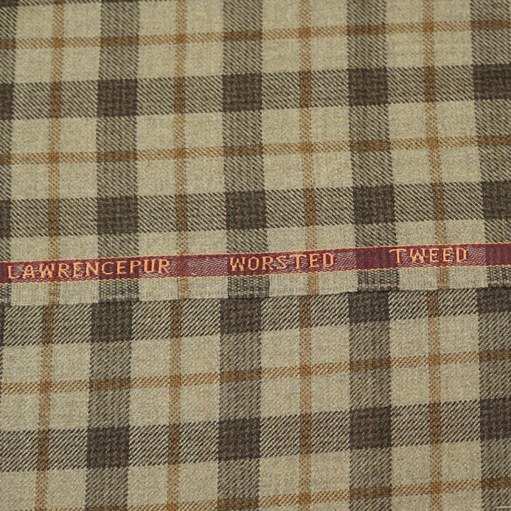Tan Brown Checks Worsted Tweed Jacketing Fabric