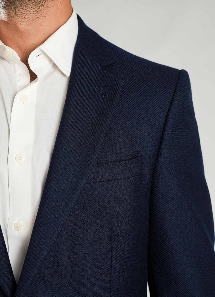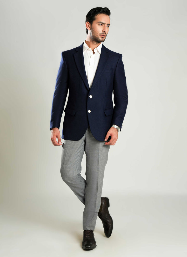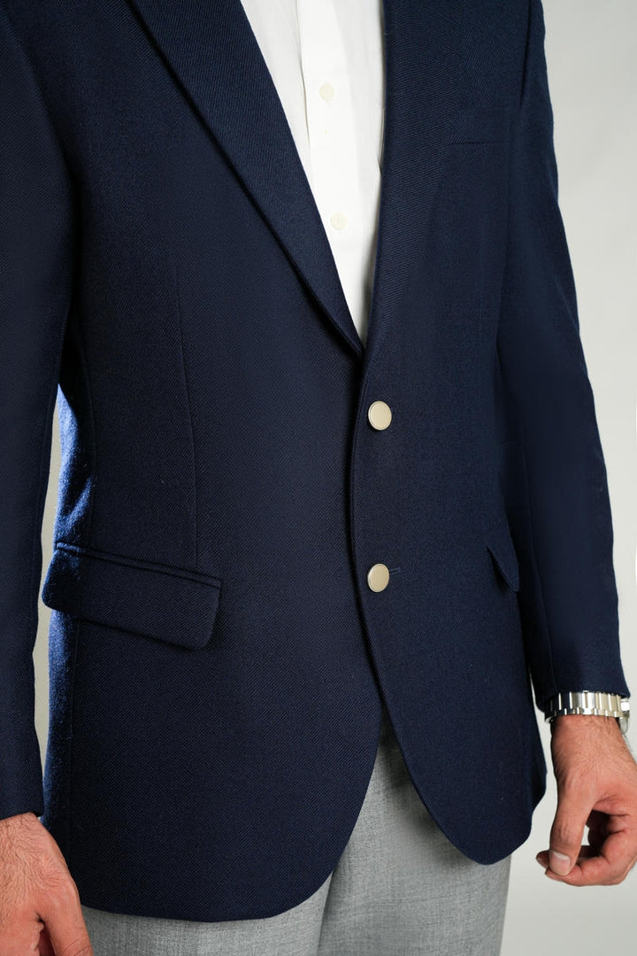 Navy Blue Plain Worsted Tweed Classic Blazer