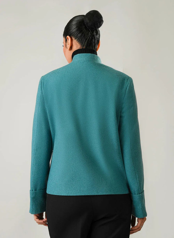 A cool and cozy ladies' jacket for a comfortable winter look. This cadet blue plain jacket is made from warm, soft fabric, perfect for everyday wear and style.