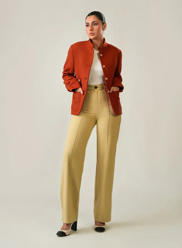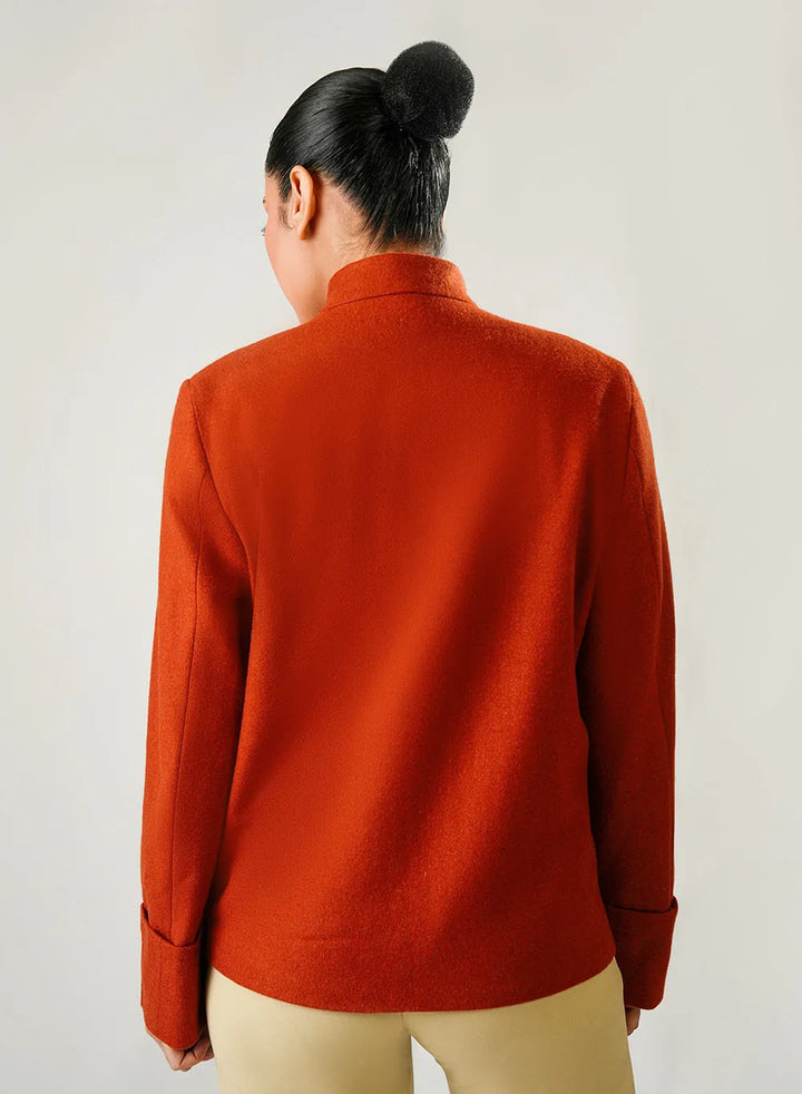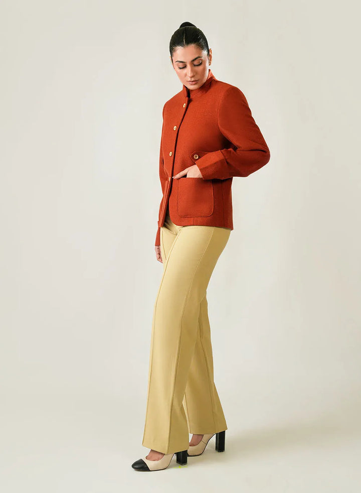 Brighten up the cold days with this vibrant Ladies Jacket. It comes in a beautiful Orange plain color and is made from comfortable PV (Poly Viscose) Jacketing to keep you warm and stylish.